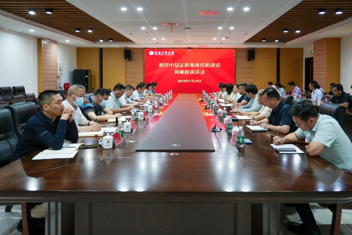 7月19日,乐鱼online(中国)在学术报告中心D204会议室举行新任中层正职集体任职谈话和廉政谈话。校党委书记刘志军,校党委副书记、工会主席周相寅,校纪委书记、监察专员张玉安出席会议。党委办公室、党委组织部、纪委负责同志和平职轮岗交流的中层正职及新提任的中层正职参加会议,会议由周相寅主持。