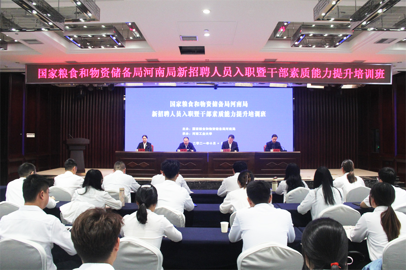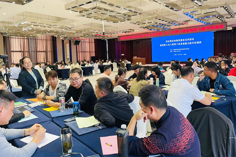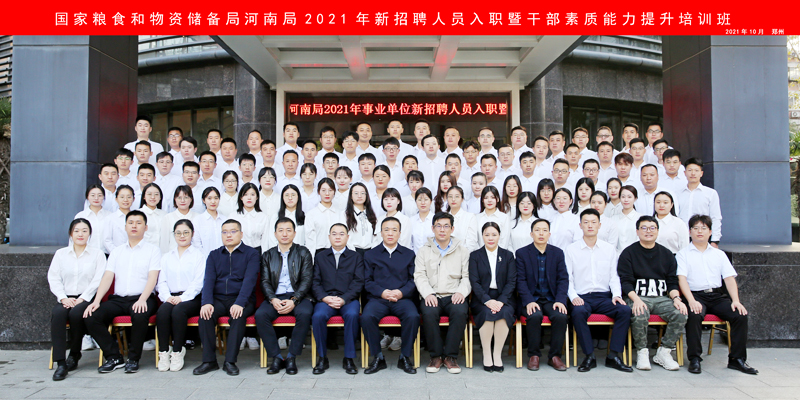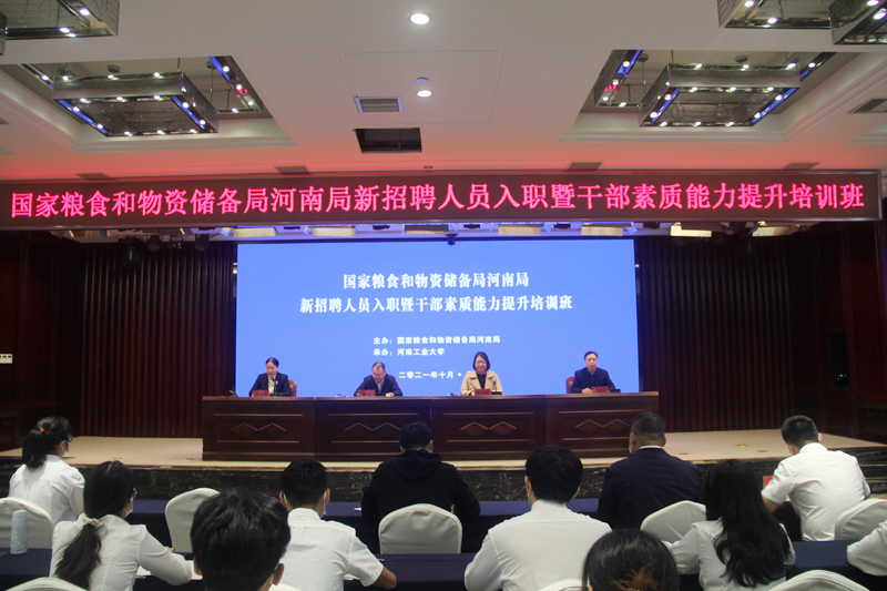 10月14日至19日,由国家粮食和物资储备局河南局主办、河南工业大学承办的“国家粮食和物资储备局河南局新招聘人员入职暨干部素质能力提升培训班”如期完成6天的培训学习,顺利结班,来自国家粮食和物资储备局河南局各基层处的89名新入职员工全程参加了培训。此次培训班是贯彻落实4月23日李成伟校长同李强副局长工作会商精神的重要成果之一,也是我校同国家粮食和物资储备局河南局打造沟通交流平台,推动共同发展,实现合作共赢的重要抓手。