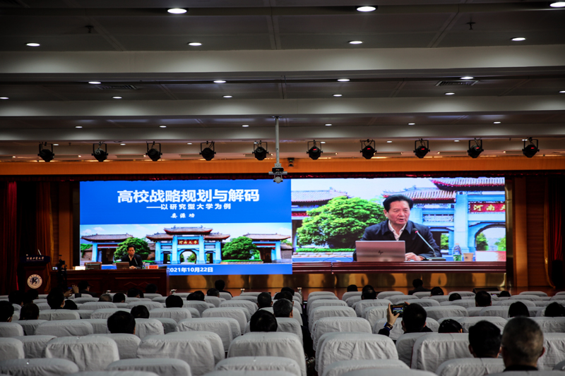 娄源功教授的报告题目为《高校战略规划与解码——以研究型大学为例》。他的报告结合“规划之前先找差距”、“战略规划四个模块”、“战略执行四个保障”、“战略解码四个步骤”、“专业规划创新举例”等五个方面内容展开,理论讲解与案例介绍相结合,立足高等教育发展规律和当前变革大势,从高校战略规划的作用和任务出发,结合长期的高校管理经验和教育智慧,深刻分析了做好高校战略规划的理论和实践问题。娄教授语言通俗易懂、风趣幽默,有高度、有深度、有温度,报告结束时现场掌声雷动。