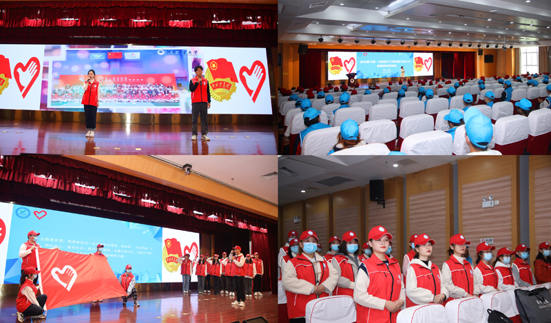 在我校原创志愿服务主题曲《希望》的旋律中,与会领导向服务本届招才引智发展创新大会的高校志愿者代表授旗。全体志愿者进行了庄严的岗前宣誓,并接受了大型赛会志愿服务、志愿者文明礼仪、突发事件的应对与处理、新冠肺炎及常见传染病预防等专门培训。