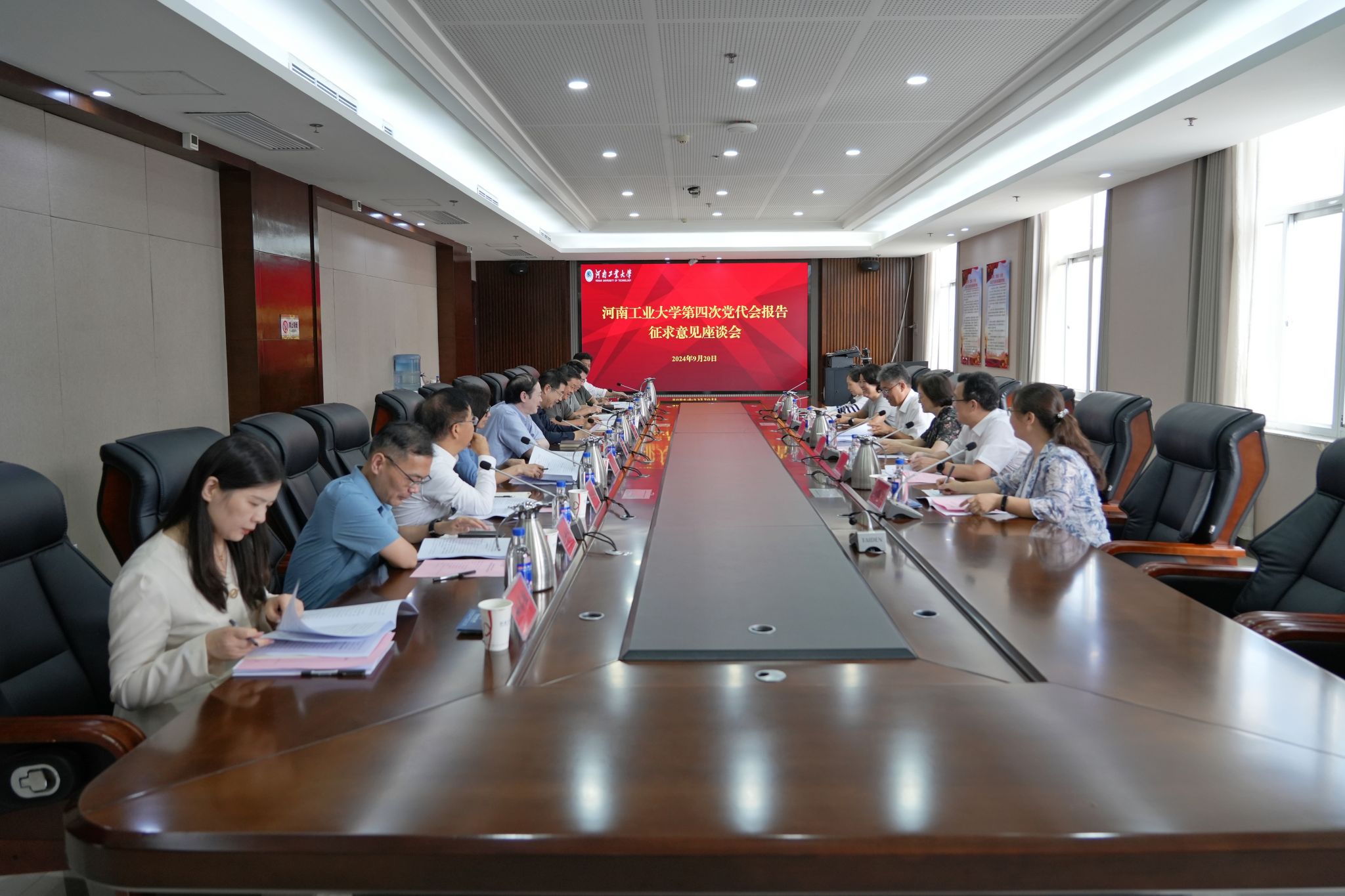 为开好乐鱼online(中国)第四次党代会,高质量完成党委工作报告的修改完善工作,9月20日,校党委书记刘志军在行政楼A515主持召开座谈会,就第四次党代会报告征求厅级领导代表意见。河南财经政法大学党委书记、校长司林胜,河南开放大学党委书记赵继红,河南工程学院校长李利英,周口师范学院校长张宝强,信阳农林学院校长曹健,河南城建学院校长陈桂香应邀参加座谈会。校长吴智深出席会议。