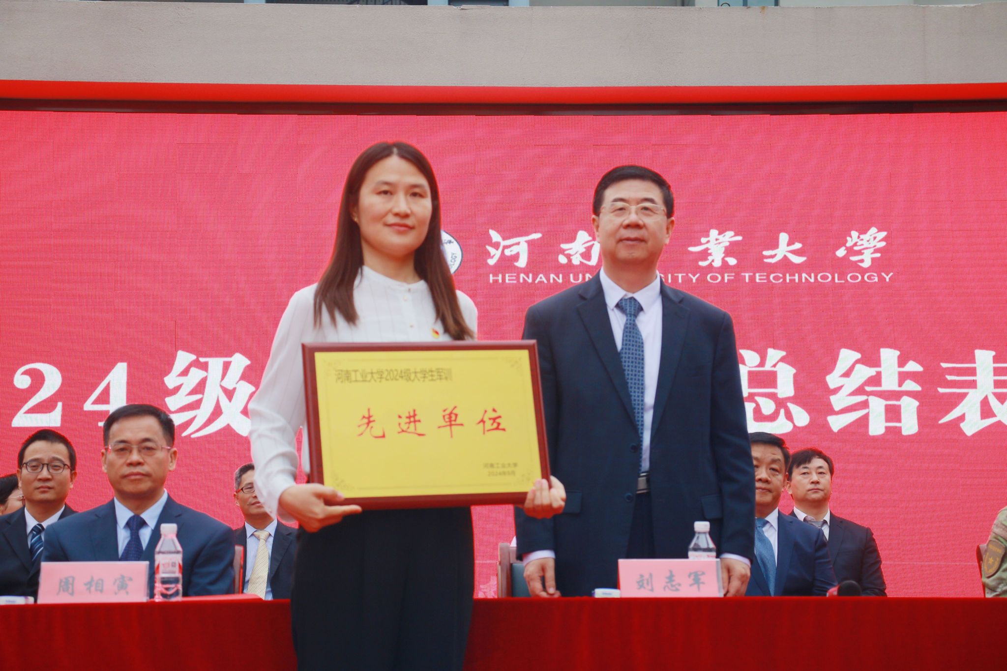 校党委书记刘志军为军训先进单位颁奖