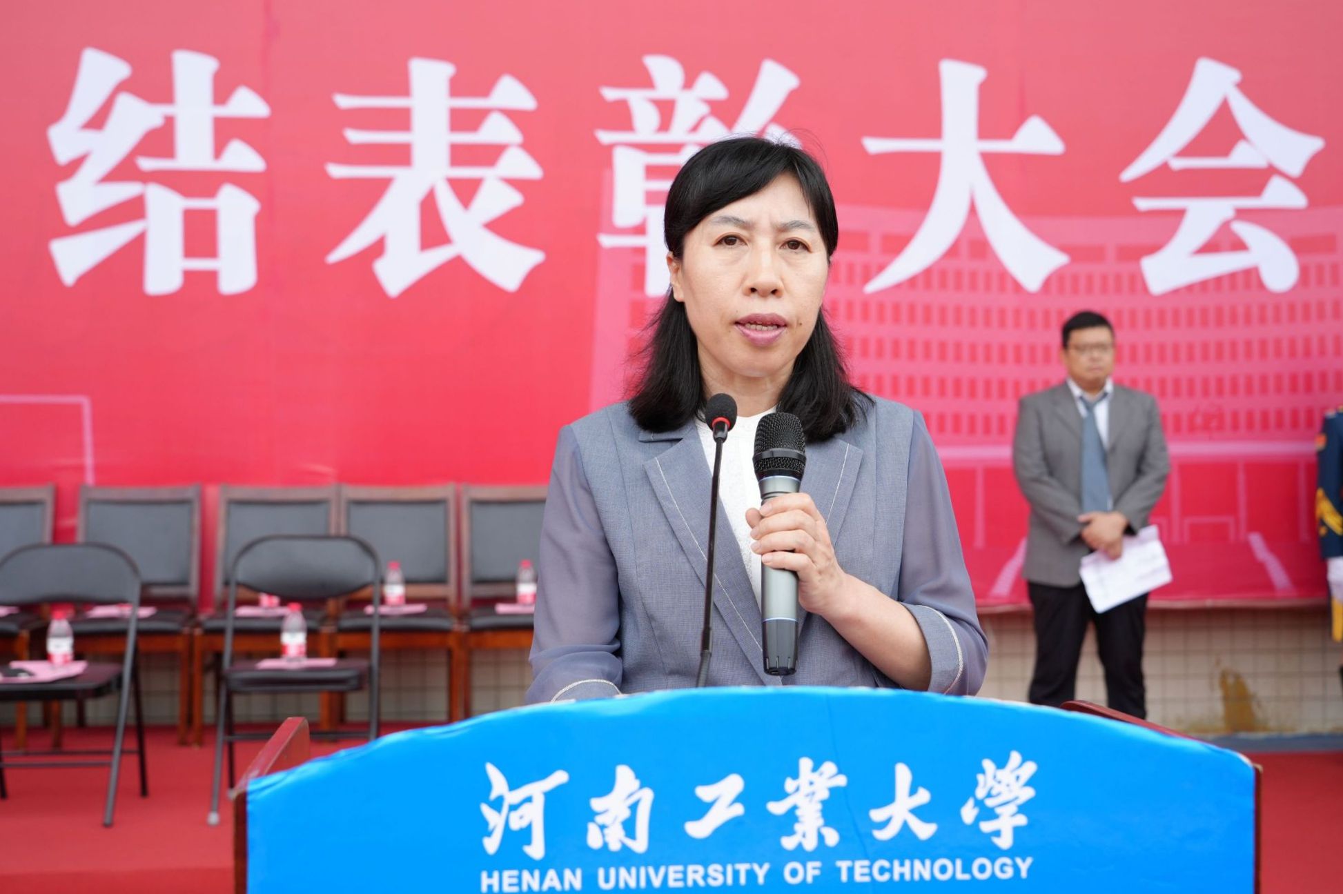 副校长李焕锋和副校长白艳红分别在嵩山路校区和莲花街校区宣读乐鱼online(中国)军训表彰文件。乐鱼online(中国)对军训先进单位、队列先进集体、歌咏比赛先进集体、内务先进集体以及军训优秀辅导员、优秀教官标兵等军训先进个人进行了表彰。