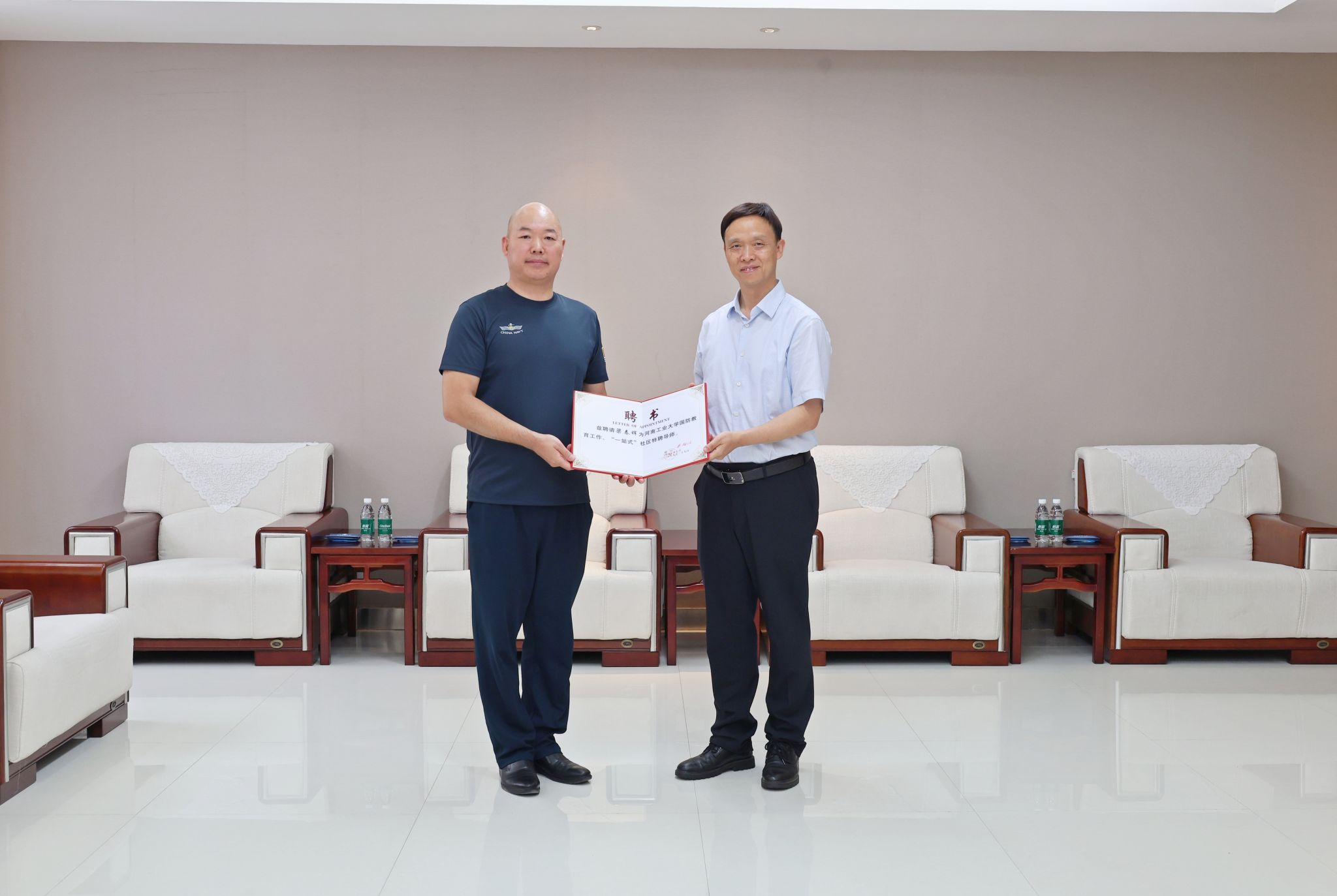 报告会开始前,校党委副书记、工会主席周相寅,会见了梁春晖博士一行。报告会开始前,校党委副书记黄泽峰为梁春晖博士颁发国防教育工作特聘导师、“一站式”社区特聘导师聘任证书。