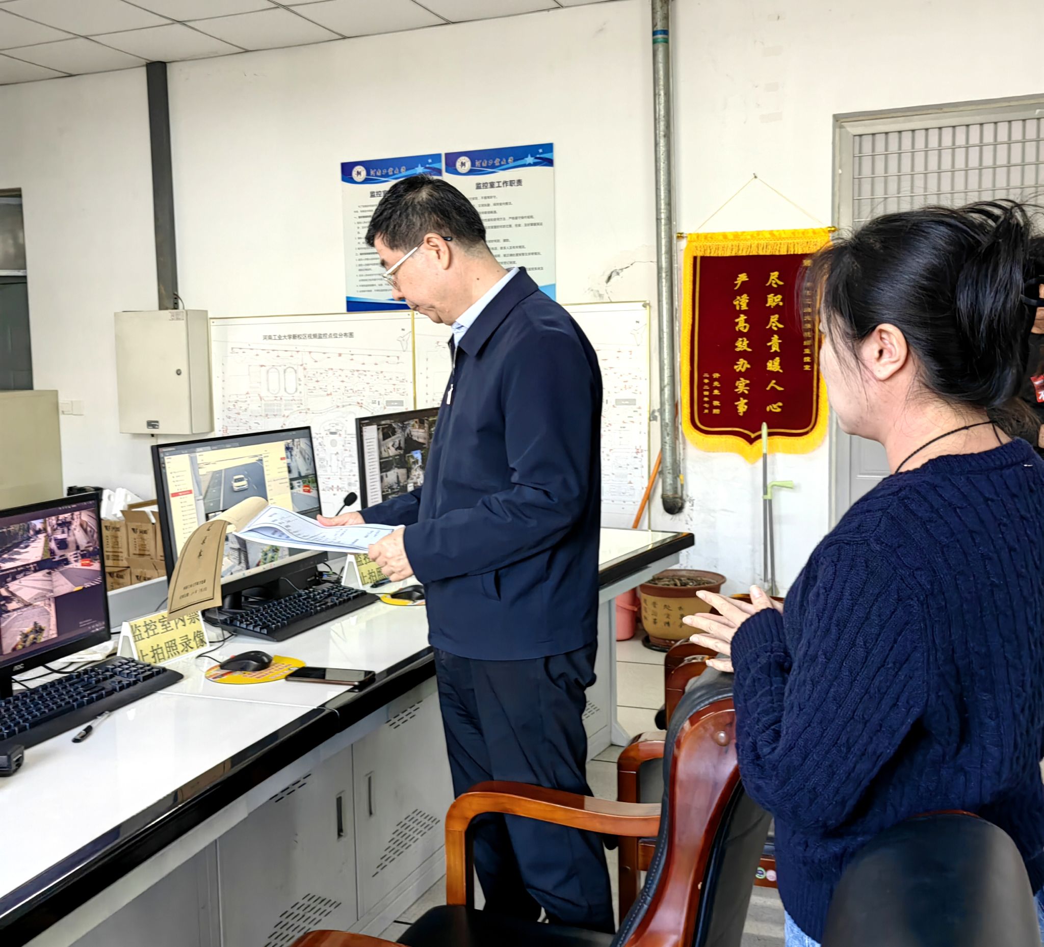 刘志军先后到乐鱼online(中国)总值班室、保卫处、视频监控室、消防预警监控室、学生事务中心、学生餐厅、学生宿舍等地进行走访检查,与在岗值班人员和在校学生进行交流,并表达了节日问候。