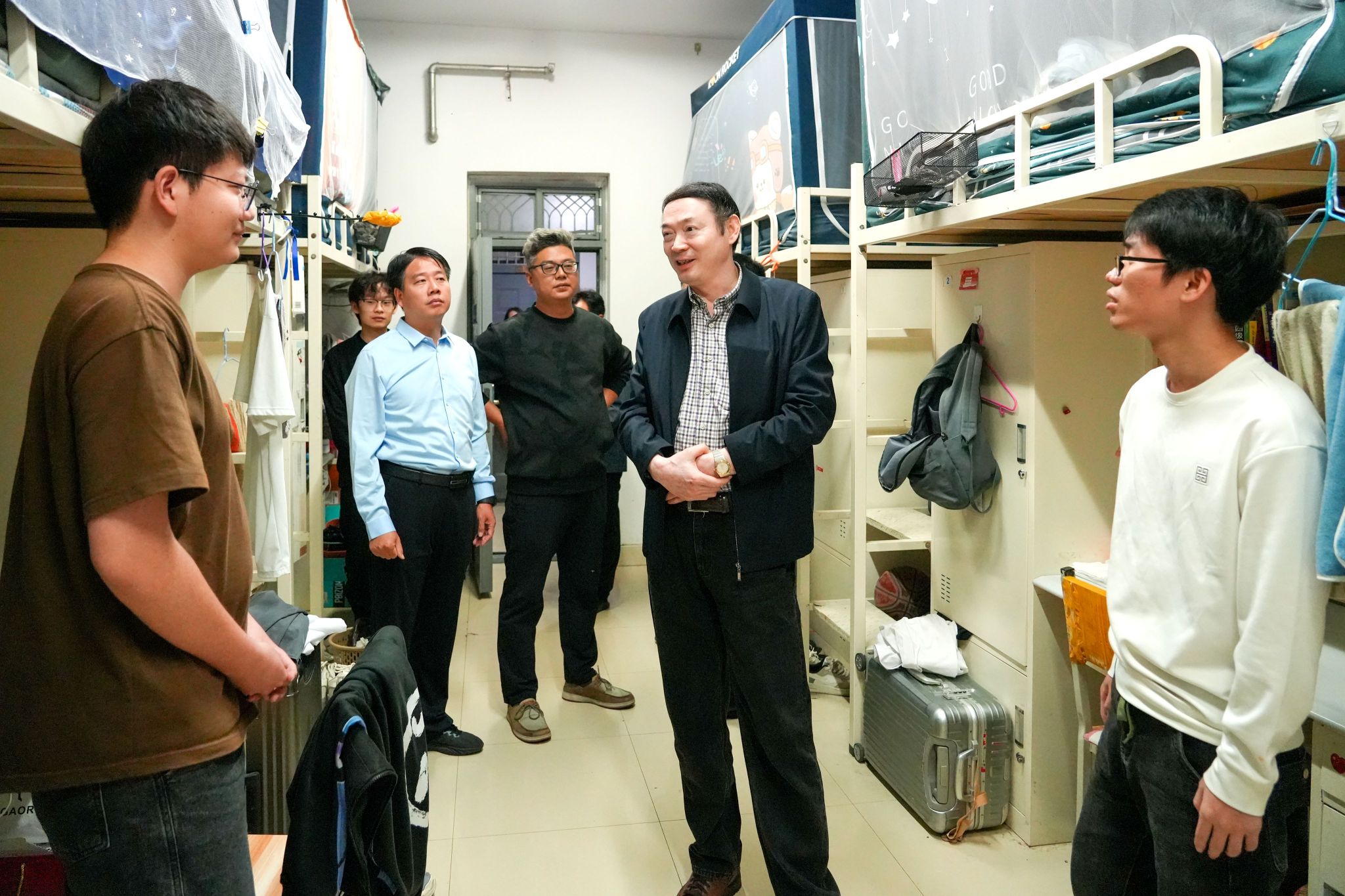 为深入贯彻落实全省教育系统安全工作视频会议精神,确保国庆节后学生返校及返程中的安全稳定,10月7日,校长吴智深在党委宣传部、党委学工部、校长办公室等部门同志陪同下,实地走访校园各地,详细了解国庆节期间学生返校的校园安全保障工作。