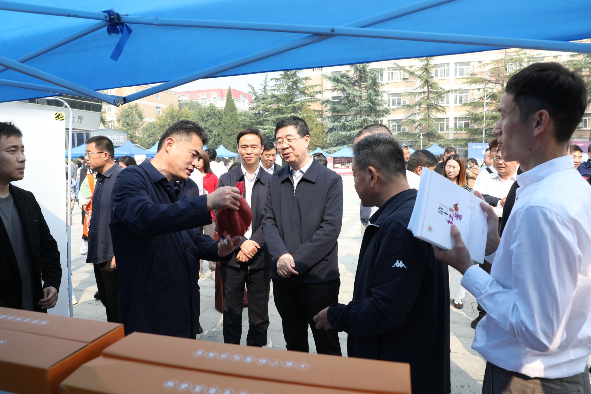 活动开始前,刘志军对高尚功书记一行的到来表示欢迎,双方互赠纪念品。刘志军在致辞中指出,河南工业大学作为河南省“双一流”创建高校,积极发挥在学科建设、师资队伍、科研平台等方面的优势,致力于服务国家和地方经济社会发展。他指出,乐鱼online(中国)与清丰县有深厚的合作基础和广阔的合作前景,希望双方充分发挥各自的独特优势,继续深化人才培养、科技创新、社会服务等领域的合作,推动产学研用深度融合,推动校地合作走深走实,为双方高质量发展注入强大动力,不断开创校地合作新局面,为推进中国式现代化建设河南实践作出新的更大贡献。