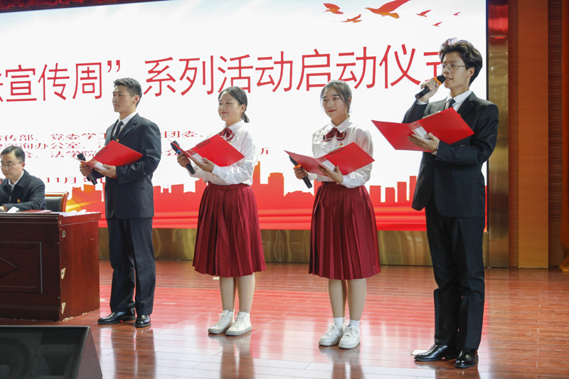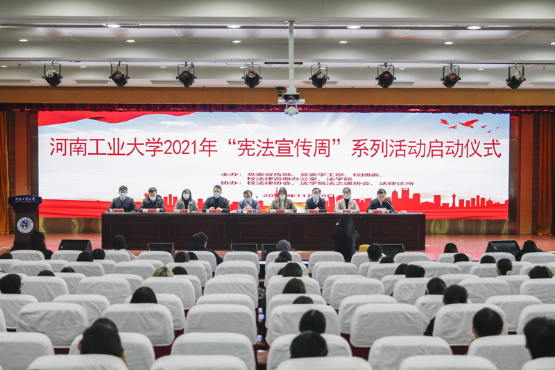 仪式在庄严的国歌声中拉开帷幕。法学院党委副书记许文宣读《河南工业大学2021年宪法宣传周系列活动方案》,介绍了活动内容,明确了责任主体和工作措施。