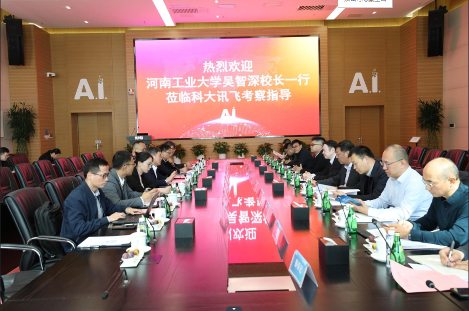 10月25日上午,校长吴智深带队赴科大讯飞股份有限公司考察交流。科大讯飞股份有限公司总裁吴晓如、副总裁孙亮、产教融合业务线总经理马季和副总经理张承云等,我校纪委书记张玉安、学术副校长李鹏,发展规划处、教务处、产业技术研究院、人工智能与大数据学院、信息科学与工程学院等部门负责人参加座谈会。