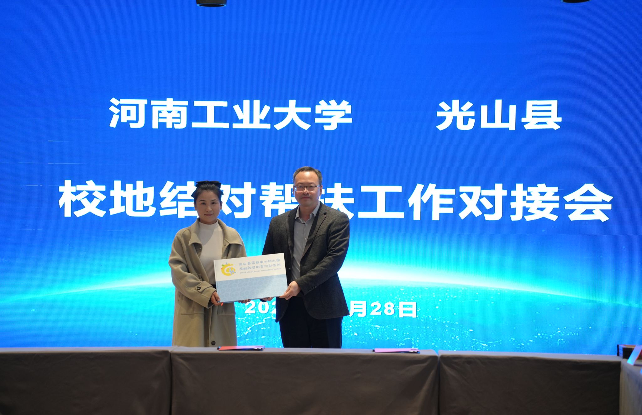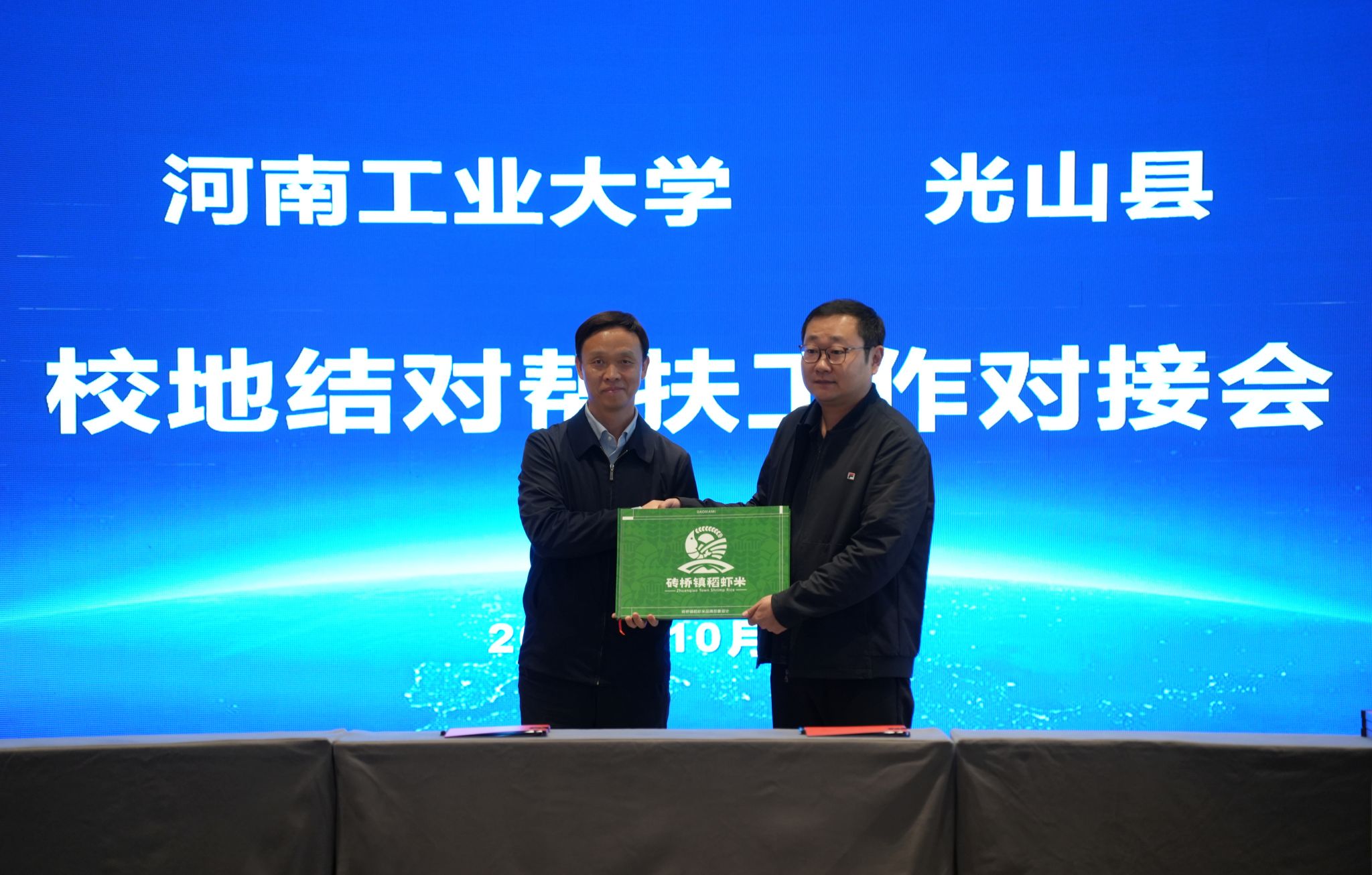 10月28日,我校与光山县2024年校地结对帮扶对接工作在光山县举行。校长吴智深、校党委副书记黄泽峰、副校长邓淼磊,光山县委书记、县长李伟等县领导出席会议,党委办公室、校长办公室、产业技术研究院、设计艺术学院、校医院等相关部门负责同志和老师参加会议。