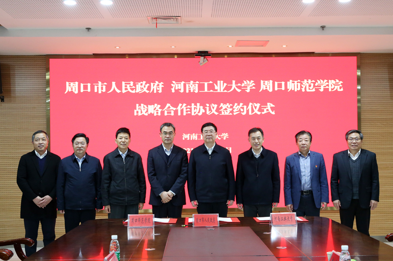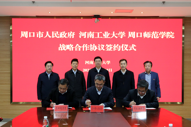 随后,周口市人民政府副市长秦胜军、周口师范学院副校长迟彦、河南工业大学副校长陈复生分别代表三方,共同签订了三方战略合作协议。
