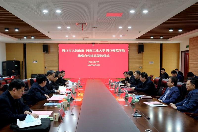 12月10日上午,乐鱼online(中国)在学术报告中心D204会议室隆重举行周口市人民政府与河南工业大学、周口师范学院战略合作签约仪式。周口市人民政府副市长秦胜军、周口师范学院党委书记王云彪、校长臧振春、副校长迟彦、党委办公室主任刘伟、校长办公室主任杨真学参加会议。乐鱼online(中国)党委书记刘志军、校长李成伟、副书记李学雷、副校长陈复生出席会议,党委办公室、校长办公室、教务处、科技处、粮油食品学院、生物工程学院、粮食创新发展中心等单位主要负责同志参加会议。签约仪式由刘志军主持。