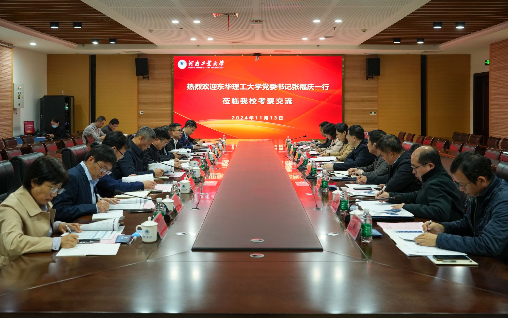 刘志军对张福庆一行的到来表示欢迎,并介绍了我校的历史沿革、办学特色、学科建设和科学研究等方面情况。他指出,河南工业大学是新中国成立的第一所粮食类院校,东华理工大学是中国核工业第一所高等学府,两校均成立于1956年,自诞生之日起就与行业同呼吸共命运,深度服务国家战略和地方经济发展。希望两校加强互动、深入交流、彼此助力,在合作共赢中推动双方事业高质量发展,更好服务教育强国建设。
