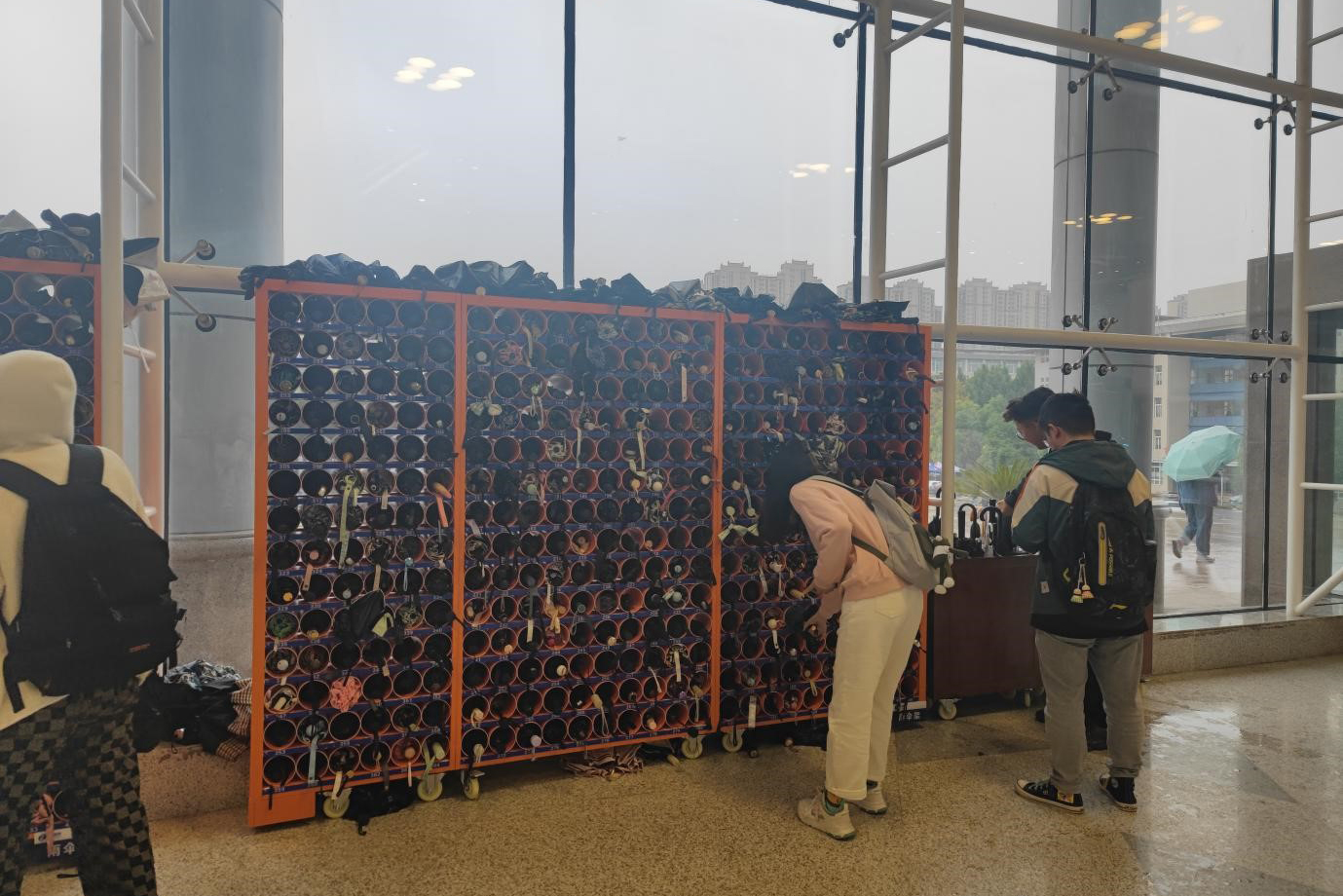 为方便读者存放个人物品,图书馆引进社会力量,在图书馆各楼层安装智能存包柜,共1800箱;在二层大厅玻璃幕墙内侧安装特色雨伞墙,可同时放置2000把雨伞。为了保证师生在灾情之后能够饮用到安全水,图书馆专门安装了十台饮水机,图书馆值班人员坚守岗位,每天搬运桶装饮用水数十桶,并进行及时的管理和维护,工作态度端正积极。这一举动为来馆师生的安全提供了很大的保障,在极大程度上温暖了师生的心。