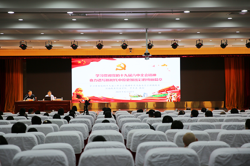 报告会上,罗士喜以《学习贯彻党的十九届六中全会精神奋力谱写新时代中原更加出彩的绚丽篇章》为题,从“深刻认识党的百年奋斗的初心使命和重大成就”“深刻把握新时代的历史性成就和历史性变革”“深刻认识党的百年奋斗的历史意义和历史经验”“深刻认识以史为鉴、开创未来的重要要求”“贯彻落实六中全会精神和省第十一次党代会精神、谱写新时代中原更加出彩的绚丽篇章”五个方面,运用大量史实、生动案例,对党的十九届六中全会精神进行了系统阐述和深刻解读。他强调,要深入学习宣传贯彻习近平总书记重要讲话精神和党的十九届六中全会精神,要与学习贯彻省第十一次党代会精神结合起来,坚持从党的百年奋斗历程中汲取智慧和力量,在大有作为的新时代书写好河南高等教育改革发展“奋进之笔”,为全面建设社会主义现代化河南新征程、奋力谱写新时代中原更加出彩绚丽篇章,走好新时代赶考之路。