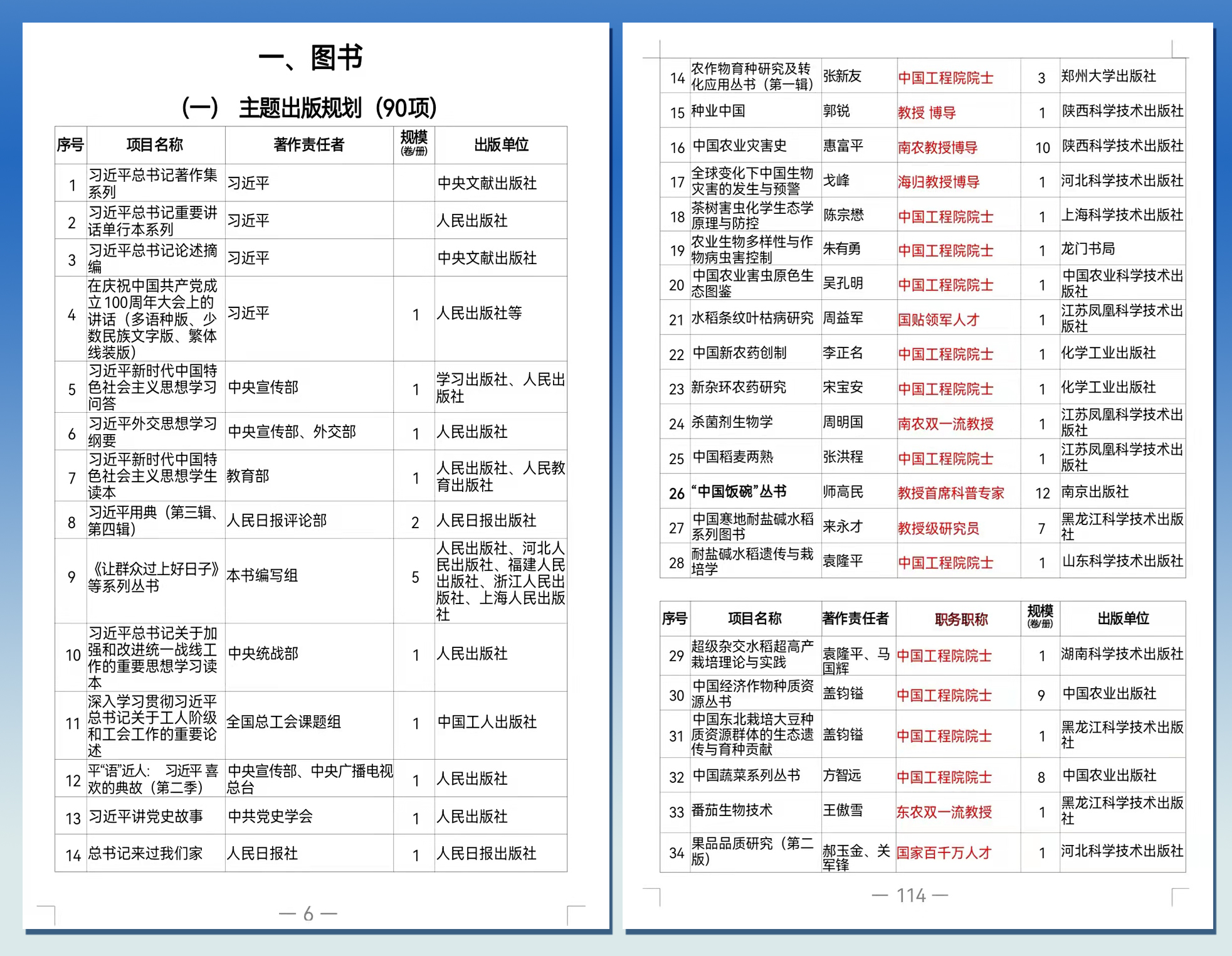 本次入选“规划”的农业科学类国家重点图书共43种,其作者多是两院院士、国家级专家,水平很高,实力强悍。我校《中国饭碗》编撰项目进入首批“十四五规划”,为我校科研上台阶,争得话语权,扩大影响力作出了突出贡献。