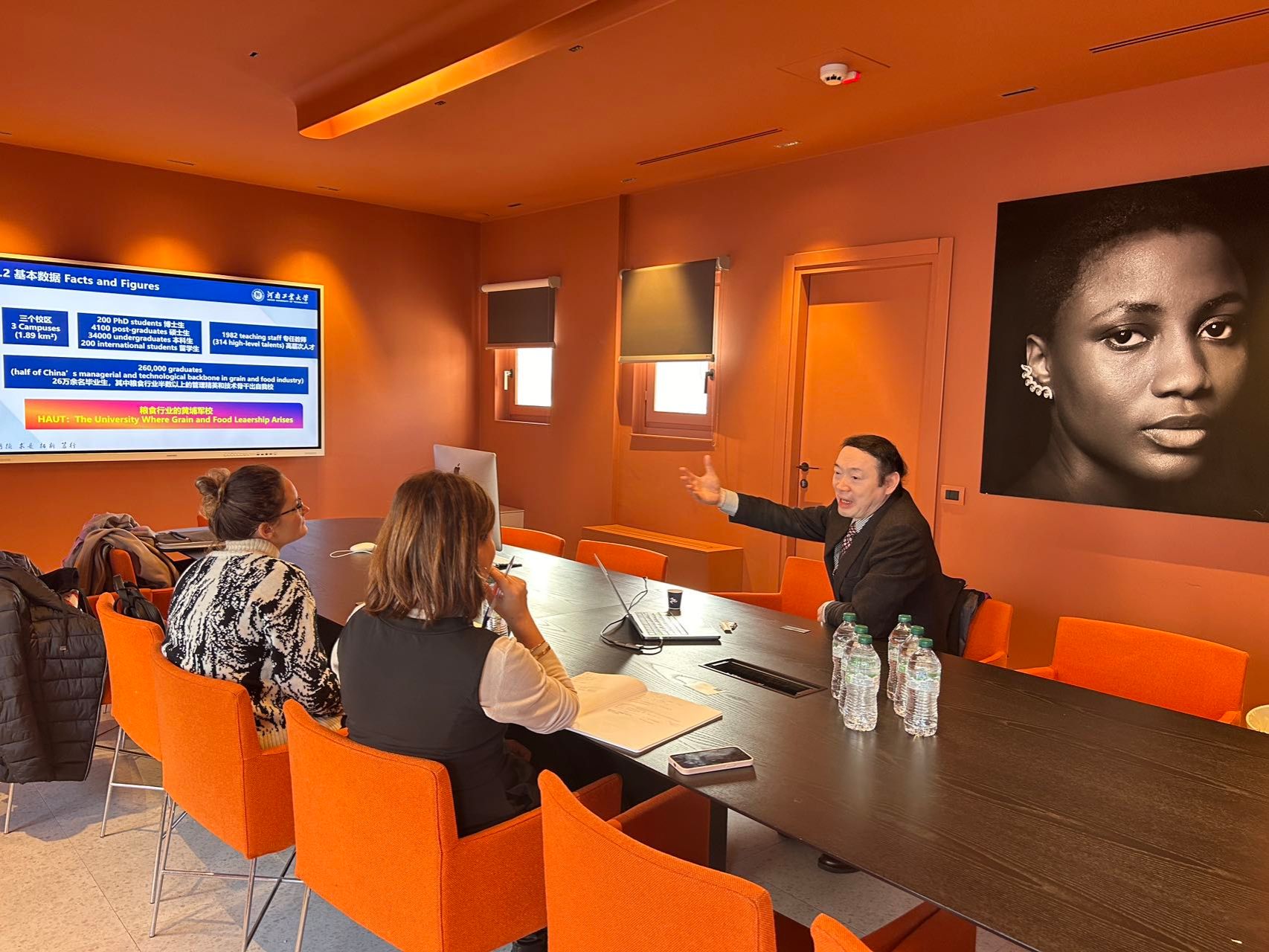 11月27日,代表团访问雷丁大学。雷丁大学的食品科学学科在全球享有盛誉,也和我校有着长期的合作。访问期间,吴智深会见了雷丁大乐鱼online(中国)长罗伯特范德努特教授,共同签署了《河南工业大学-雷丁大学硕士研究生培养项目资金安排管理协议》,随后与该校国际事务副校长卡罗琳,国际事务部、亨利商学院等部门和学院负责人就联合培养硕士和博士研究生、共建国际联合实验室、师生交流互访等深化合作事宜进行了深入交流。