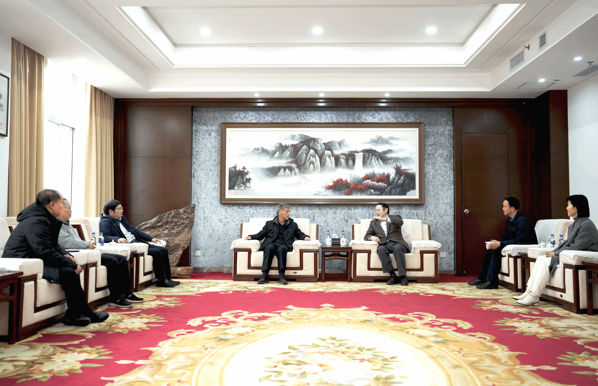 吴智深代表乐鱼online(中国)对李学志、王天泽一行来校表示欢迎,对他们对河南工业大学一直以来的关心和支持表示感谢,并介绍了我校历史沿革、学科建设、人才培养、“双一流”创建等方面的工作情况。吴智深与来宾就数学与统计学科建设、科技创新、研究生培养及多学科交叉等方面进行了深入探讨和交流,希望双方能够进一步加强交流合作,携手推动我省高等教育事业高质量发展。