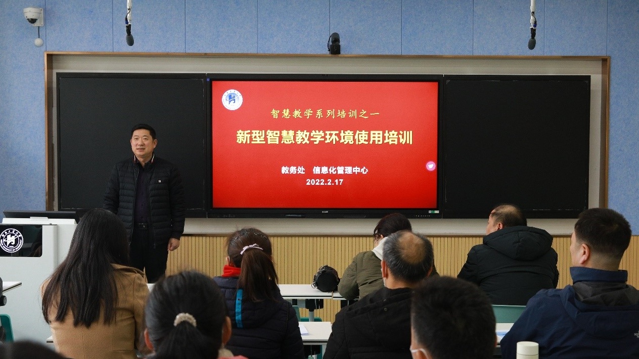 2月17日下午,我校“智慧教学示范区”启用仪式暨新型智慧教室使用培训在3号教学楼3205智慧教室举行。副校长李焕锋,教务处、实验室管理处、信息化管理中心、后勤服务中心等单位负责同志以及乐鱼online(中国)督导组成员、有关教师、项目建设及管理人员等参加活动。活动由信息化管理中心主任张强主持。