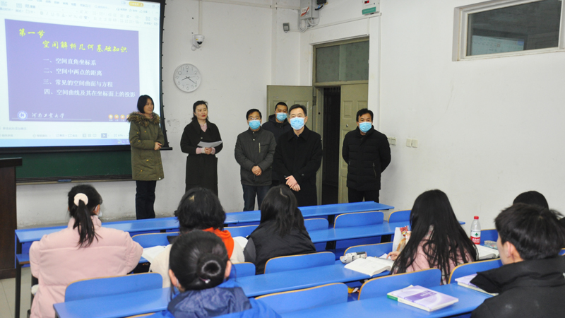 春回大地,万象更新。2月21日,我校迎来新学期开学第一天,乐鱼online(中国)党委书记刘志军、校长李成伟、副校长曹健分别带队,深入教学一线检查指导新学期教学工作。党委办公室、学生工作部、校长办公室、教务处、招生工作办公室、信息化管理中心等部门有关负责同志陪同参加。同时,学院领导、校院两级教学督导队伍以及相关教学管理人员,对课堂教学进行了全覆盖式巡查。