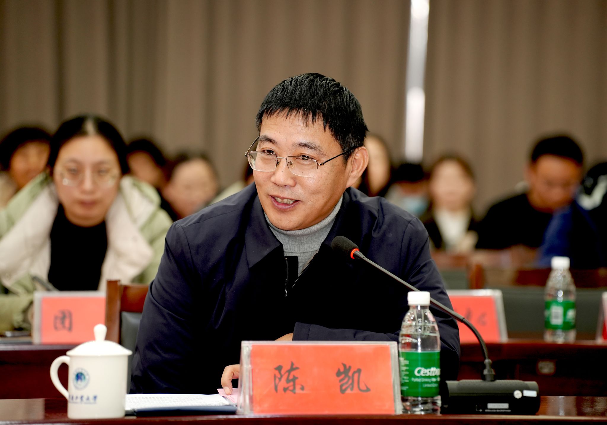 陈凯在讲话中充分肯定了乐鱼online(中国)在思想政治工作方面的实践探索。他指出,进入新时代,思想政治工作在教育强国建设全局中的重要地位和关键作用更加突出,贯彻落实立德树人根本任务、加强和改进思想政治工作有了新的更高标准和要求。河南工业大学思政先锋团暨融媒体联盟的成立是探索“大思政”工作模式的有益实践。要深刻领会“思政引领力”的科学内涵和实践要求。“思政引领力”为思政工作指明了前进方向、提供了根本遵循,要牢牢把握教育的政治属性、思想政治工作的主动权,强化政治判断力、政治领悟力、政治执行力,实现对青年学生强有力的政治引领、思想引领、价值引领,不断汇聚起建设教育强国的磅礴力量。要协同创新构建思政育人“大格局”。统筹各类思政育人资源要素,拓展育人新格局,打造互联互通、高效顺畅的育人平台,实现思想聚焦、资源聚集、力量聚合,凝聚发展合力、推动思政工作高质量发展,推动宣传思想文化工作活起来、实起来、强起来。要切实加强对青年学生的思想引领。思政工作者要锤炼扎实的理论功底、政治素养、业务水平,增强思想政治工作的阐释力、宣传力、感染力,以春风化雨、润物无声的思想引领与政治引导,增强思想政治工作的凝聚力、向心力、战斗力。