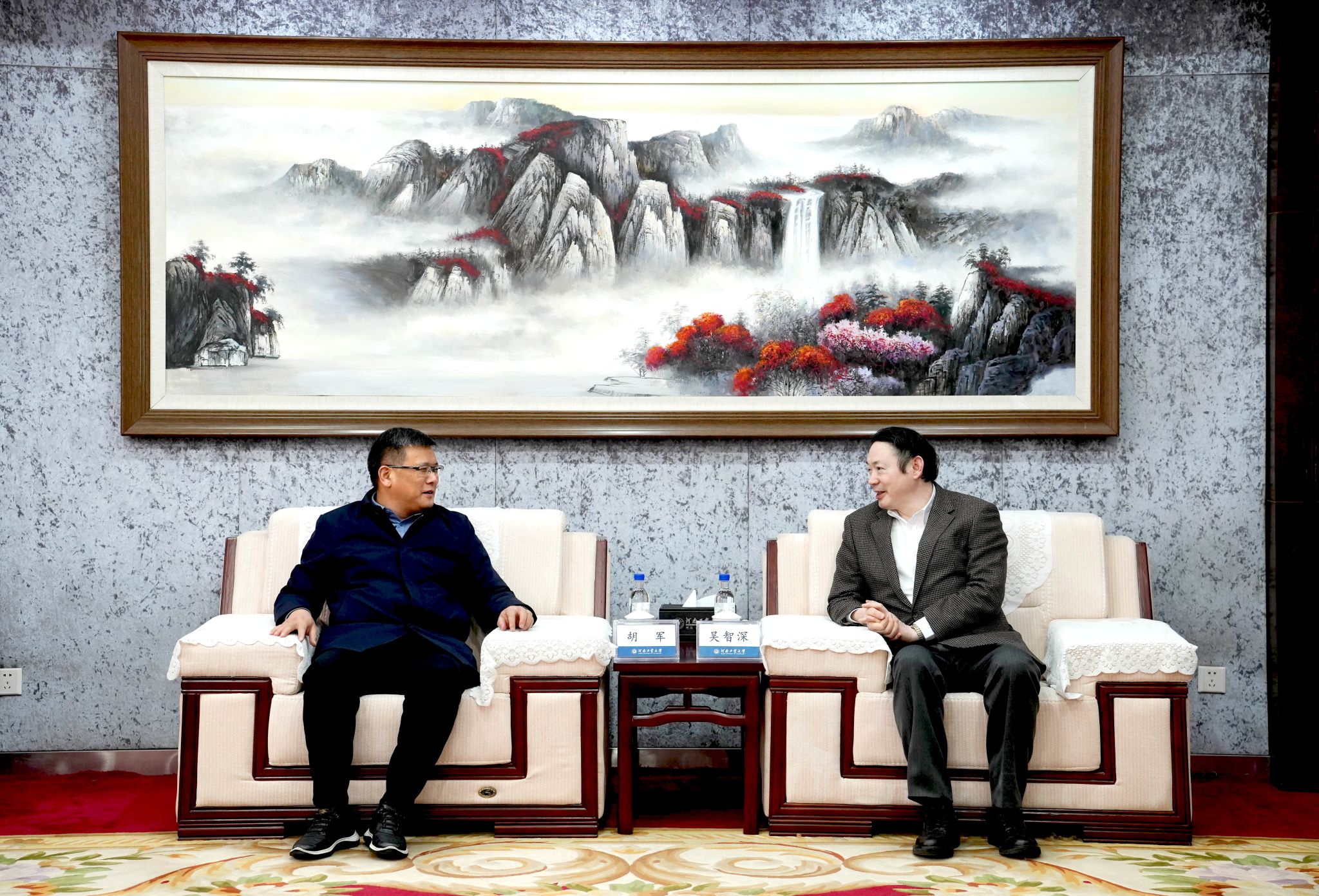1月21日下午,郑州市人民政府副市长、党组成员胡军在市委组织部、市科技局、高新区管委会等相关部门负责人陪同下,来校看望慰问吴智深校长,并代表市委、市政府送上新春祝福。乐鱼online(中国)校长办公室、人事处及前沿交叉科学与技术学院相关负责人陪同。
