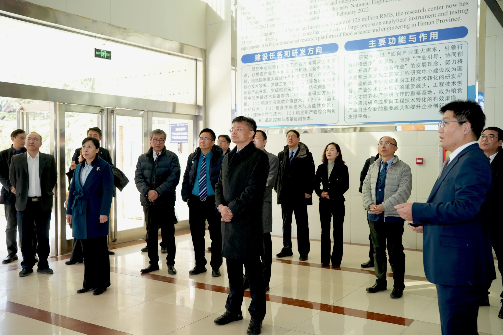 签约仪式前,朱来宾、叶雄一行考察了小麦和玉米深加工国家工程研究中心、粮机高端装备创新中心。