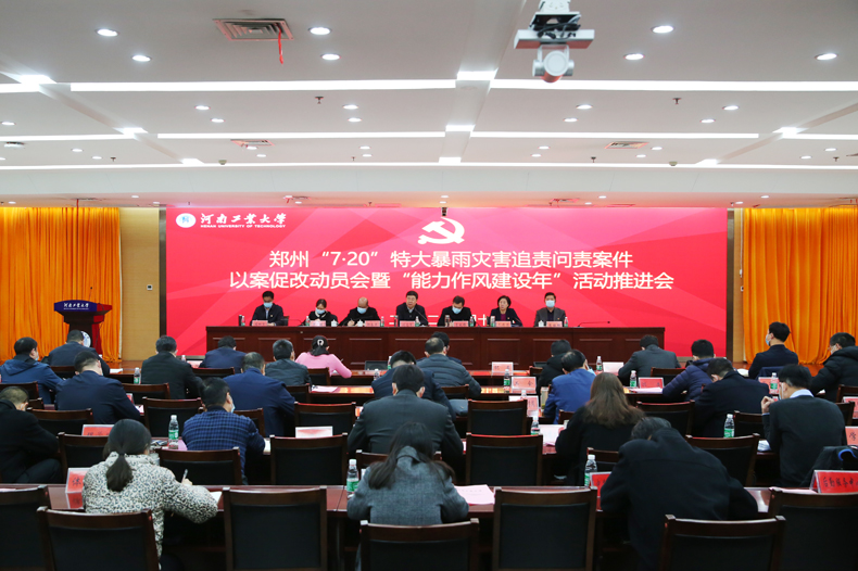 3月18日上午,乐鱼online(中国)在学术报告中心D205会议室召开郑州“7·20”特大暴雨灾害追责问责案件以案促改动员会暨“能力作风建设年”活动推进会。校党委副书记毛彦琴主持会议,全体校领导、党群部门负责人和基层党委书记参会。