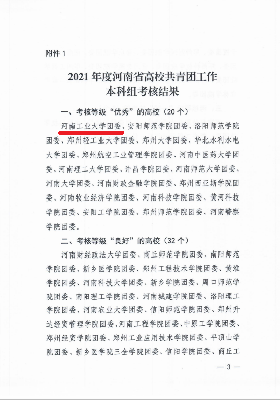 近日,共青团河南省委印发《关于2021年度河南省高校共青团工作考核结果的通报》,我校位列本科高校榜首,连续两年蝉联全省第一名。