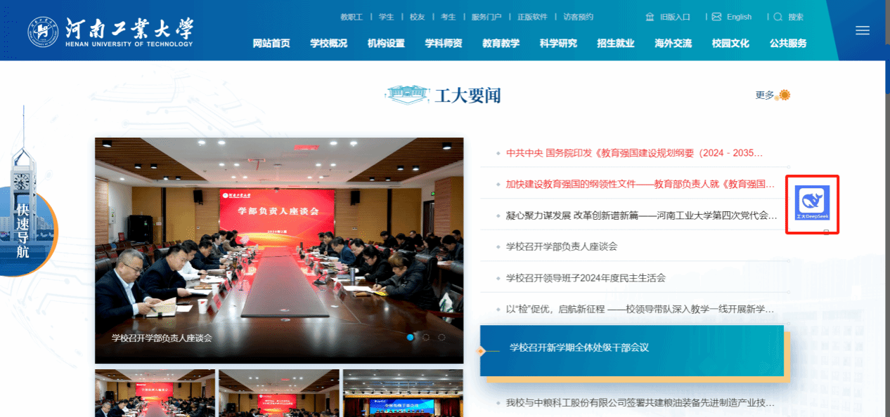 2. 访问乐鱼online(中国)官网——点击右侧“工大DeepSeek”图标——登录统一身份认证