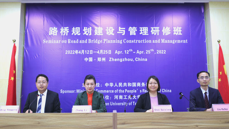 陈桂香代表河南工业大学致欢迎词。她指出,近年来,河南工业大学依托河南省对外援助培训中心,通过各种形式的培训与研修,在路桥建设、工程管理、施工技术、设计养护等方面为亚洲、非洲、北美洲多个国家的交通部门培训政府官员、管理人员和技术人员一百多名。为在疫情防控期间,高质量举办好本次研修班,乐鱼online(中国)会同河南省对外援助培训中心精心设计培训方案、高标准遴选授课师资、多环节考虑授课内容和方式,旨在通过为期14天的专题培训,使各国参训学员能够在了解学习中国交通发展成功经验的同时,立足所在国家路桥建设现状,为共同探索解决路桥工程问题、提升规划建设水平提供有效方案,同时也为践行“一带一路”倡议贡献中国智慧、中国方案。