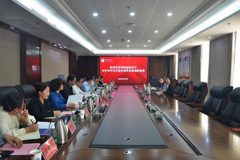 3月25日下午,河南省教育厅对外合作与交流处处长王华星一行来我校调研指导工作。校党委书记刘志军会见王华星处长。副校长李焕锋及国际交流与合作处、国际教育学院、教育培训学院、信息科学与工程学院、外语学院等相关单位负责人和部分中外人文交流项目负责人参加座谈。会议由国际交流与合作处刘国仕处长主持。