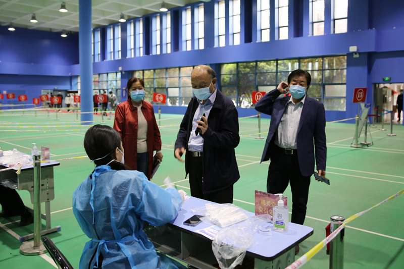 会后,许东升一行实地检查了校医院、校园餐厅、学生宿舍、大学生心理健康中心等重点区域的疫情防控措施落实情况和疫情防控物资储备情况,并查阅了相关档案资料。