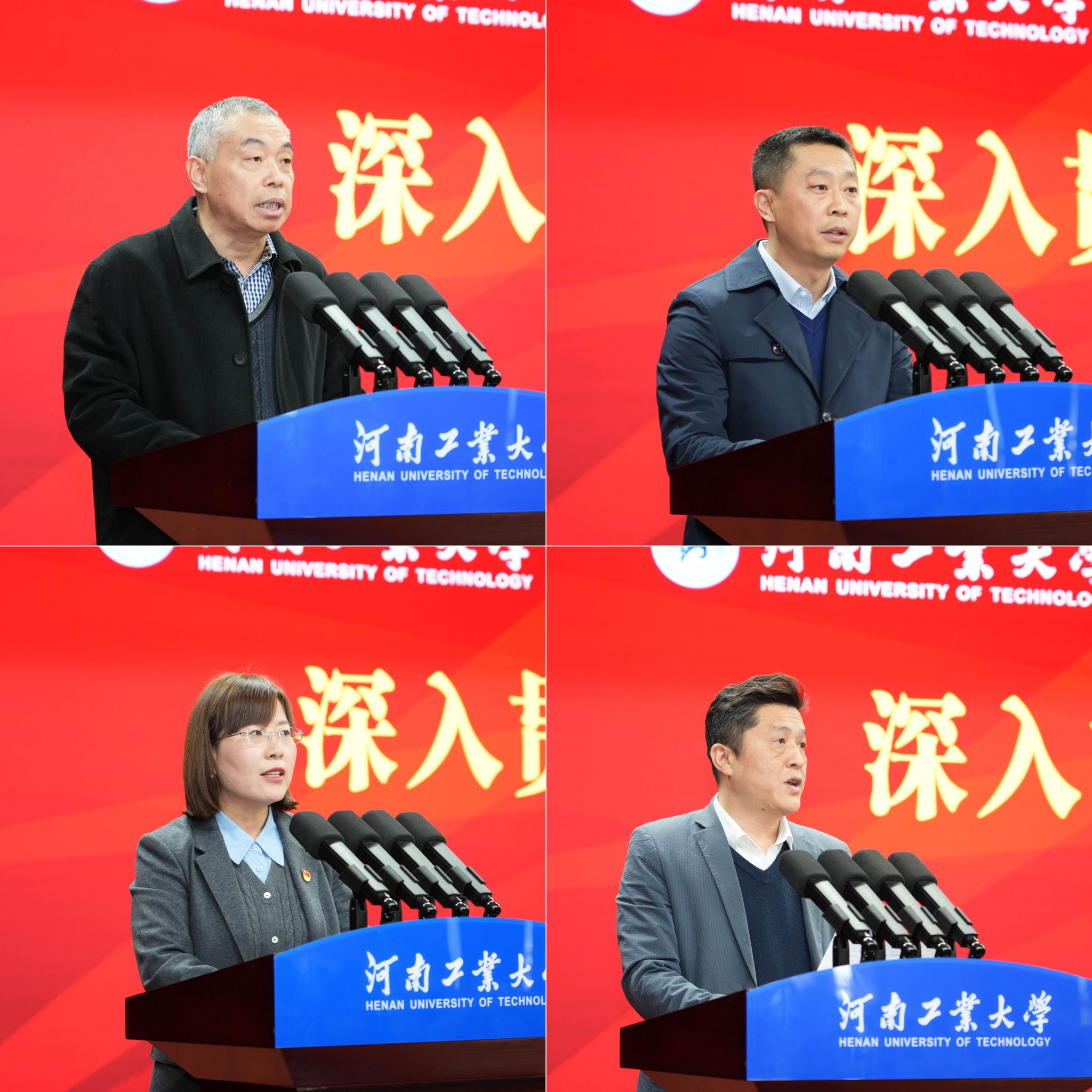 会上,校领导周相寅、牛进平、张玉安,中层干部代表孟凡鑫、刘洋、张小彩、郭晓旻作交流发言。