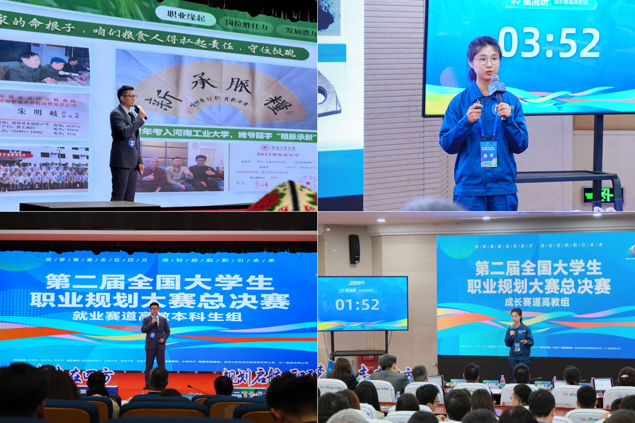 在总决赛的激烈角逐中,董清妍、金怡兴两位同学从750名国赛选手中脱颖而出。董清妍立足无机非金属材料工程专业,以“先进超硬材料,助力精密制造”为研发信条,系统构建起“职业缘起-行动成果-动态调整”的职业规划路径,立志成为超硬材料工程师;金怡兴则聚焦国家粮食安全战略,发挥金融专业优势,秉持“粮脉传薪火,数智守粮田”的理念,结合实习实践经历构建岗位胜任力模型,探索运用数智化技术革新,致力于成为粮食行业研究员。