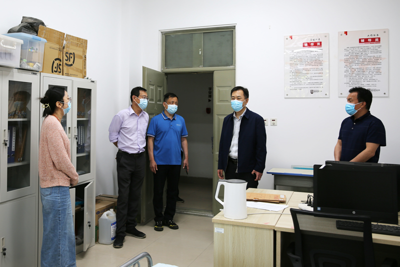 “五一”假期,郑州疫情防控升级,四万名师生的疫情防控、线上教学和生活食宿,时刻牵动着校领导的心。5月4日上午,校党委书记刘志军、校长李成伟在党委办公室和校长办公室等工作人员陪同下,分头走访调研乐鱼online(中国)疫情应急防控工作,关心慰问值班值守工作人员、服务保障人员,看望鼓舞广大师生,鼓励大家坚定信心、同舟共济、共克时艰。