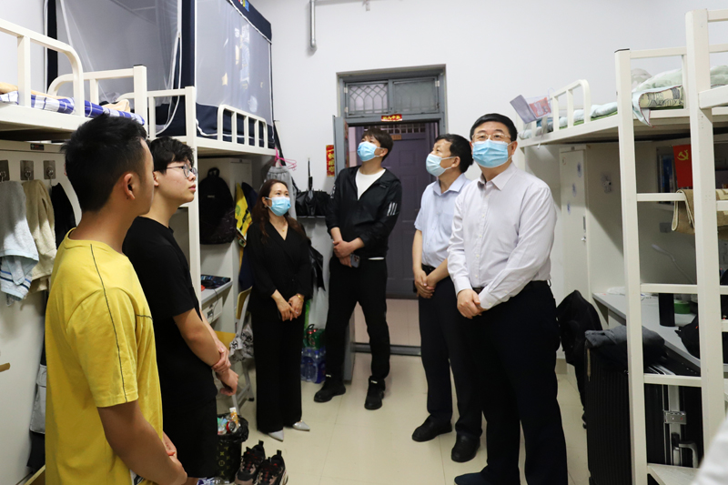 刘志军先后来到土木工程学院、管理学院,实地查看疫情防控应急管理、防疫物质配备、值班室监控等落实情况,对应急值班值守人员放假期间坚守岗位,甘于奉献、勇于担当的精神给予了充分肯定。他指出,当前全国、全省,尤其是郑州市的疫情形势严峻复杂,要提高政治站位,强化责任担当,切实将疫情防控作为当前最重要的工作做实做细;要密切联系学生,精准掌握学生思想动态和学习状态,及时解决学生急难愁盼的问题;要加强宣传教育,做好思想引领,积极传播正能量,凝聚起同心抗“疫”的磅礴力量。他在走访乐鱼online(中国)F区高层学生公寓、E区研究生宿舍时,与同学们进行了深入的互动交流,仔细询问同学们的学习、生活、就业方向等情况,真切关心同学们的学习和思想情况,叮嘱大家面对疫情不恐慌、不畏惧,加强防护,认真学习,以实际行动展现工大学子的精神面貌和良好形象。