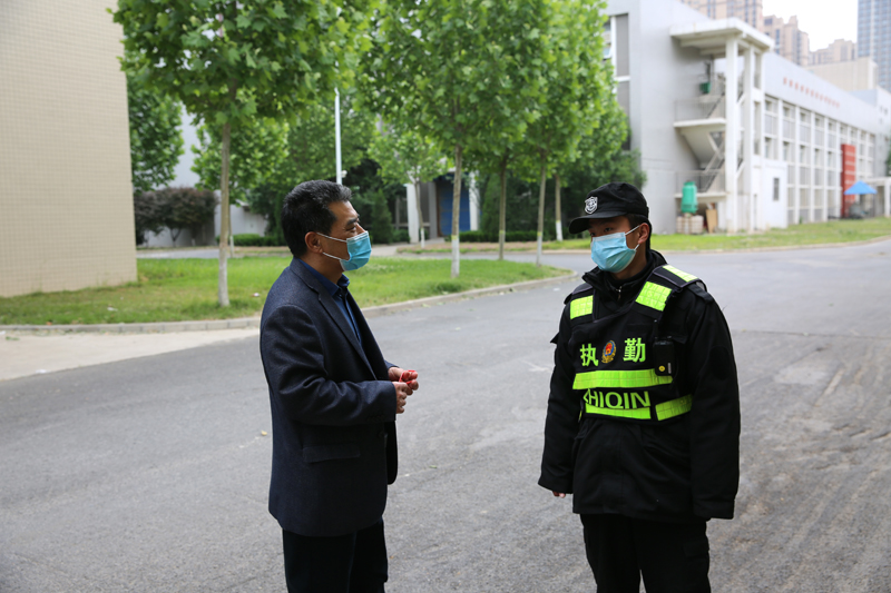 面对着国内、省内高校出现疫情的现实考验,为更好地加强校园安全管理,乐鱼online(中国)抽调校工会、科技处、审计处、社会合作与校友工作办公室、粮食创新发展中心、学报编辑部、发展规划处、社科处、国际交流与合作处、实验室管理处、基建处、档案馆等部门在校处级值班值守干部成立校园巡察突击队,在校工会副主席田顺利,实验室管理处处长王恒胜等组长带领下开展校园安全巡查,排查校园安全隐患,筑牢师生安全防线。平日里,他们是教师、是工作人员,疫情应急防控以来,他们有个共同的名字校园安全的“守护者”,他们用自己的坚守守卫着校园师生的安全,构建起一道生命围墙。