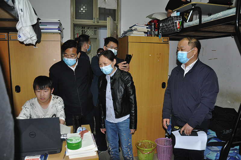 近日郑州市疫情防控措施全面升级,根据省市教育系统和乐鱼online(中国)疫情防控工作要求,乐鱼online(中国)教学模式全部转为线上教学。5月9日下午,副校长曹健带领教务处、信息化管理中心、后勤服务中心相关人员,深入机电工程学院和管理学院学生宿舍,检查线上教学运行情况,进一步了解线上教学期间学生的学习和需求。