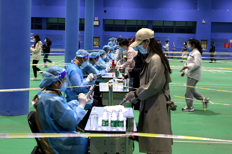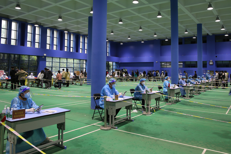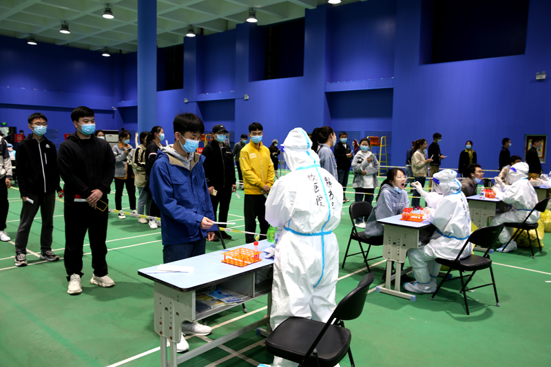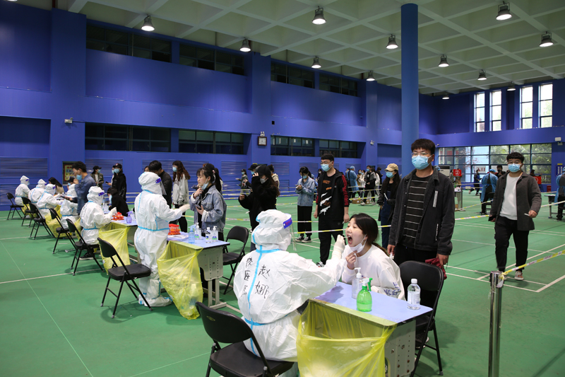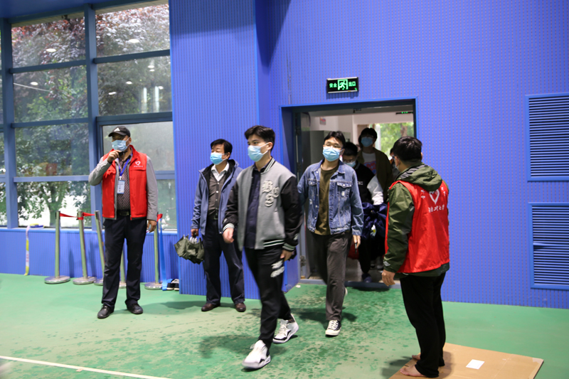 疫情防控办做好统筹安排,各学院党委书记、院长、副书记现场指挥,学工干部随队引导学生有序进场;机关党委、基层学院党员志愿者担任信息采集员、秩序维护员;校保卫人员、保安、预备役连的师生冒雨维持场外秩序;校医院的“28位大白们”连续着多日持续奋战……,地滑,铺防滑地毯、不停擦干入口处雨水;人多,不间断的进行分流管控协作;一个个简单的行为,一个个熟练的动作,一个个穿着红色马甲背影;让乐鱼online(中国)核酸监测点——乐鱼online(中国)体育训练中心温暖融融。有的工作人员衣服鞋子湿透了、有的志愿者嗓子喊哑了,大家没有半点怨言,顶住压力,克服困难,乐鱼online(中国)32000余人完成了核酸检测。
