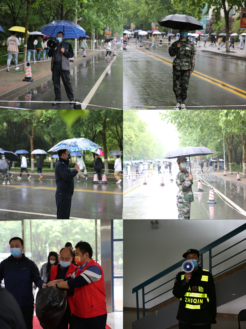 5月9日,郑州突降大雨,天气骤然降温,给乐鱼online(中国)疫情防控又增加了新的挑战,乐鱼online(中国)值班值守教师、师生青年志愿者坚守疫情防控一线,在严峻的疫情防控形势下,逆向而行,在风雨中凝聚工大抗“疫”力量。