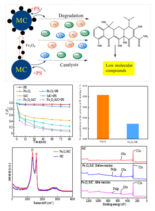 近日,我校水污染控制与可持续利用团队张良波副教授课题组在国际著名期刊Chemical Engineering Journal发表了题为《Heterogeneous catalytic oxidation of tetracycline hydrochloride based on persulfateactivated by Fe3O4/MC composite》(DOI:10.1016/j.cej.2022.137406)的学术论文。Chemical Engineering Journal是Elsevier旗下国际著名学术期刊,为化学—工程领域中科院一区top期刊,2021年影响因子为13.273。我校为论文唯一通讯单位,张良波副教授为论文第一作者兼通讯作者,史亚慧博士为论文共同作者,硕士研究生王艳旗为论文第二作者。