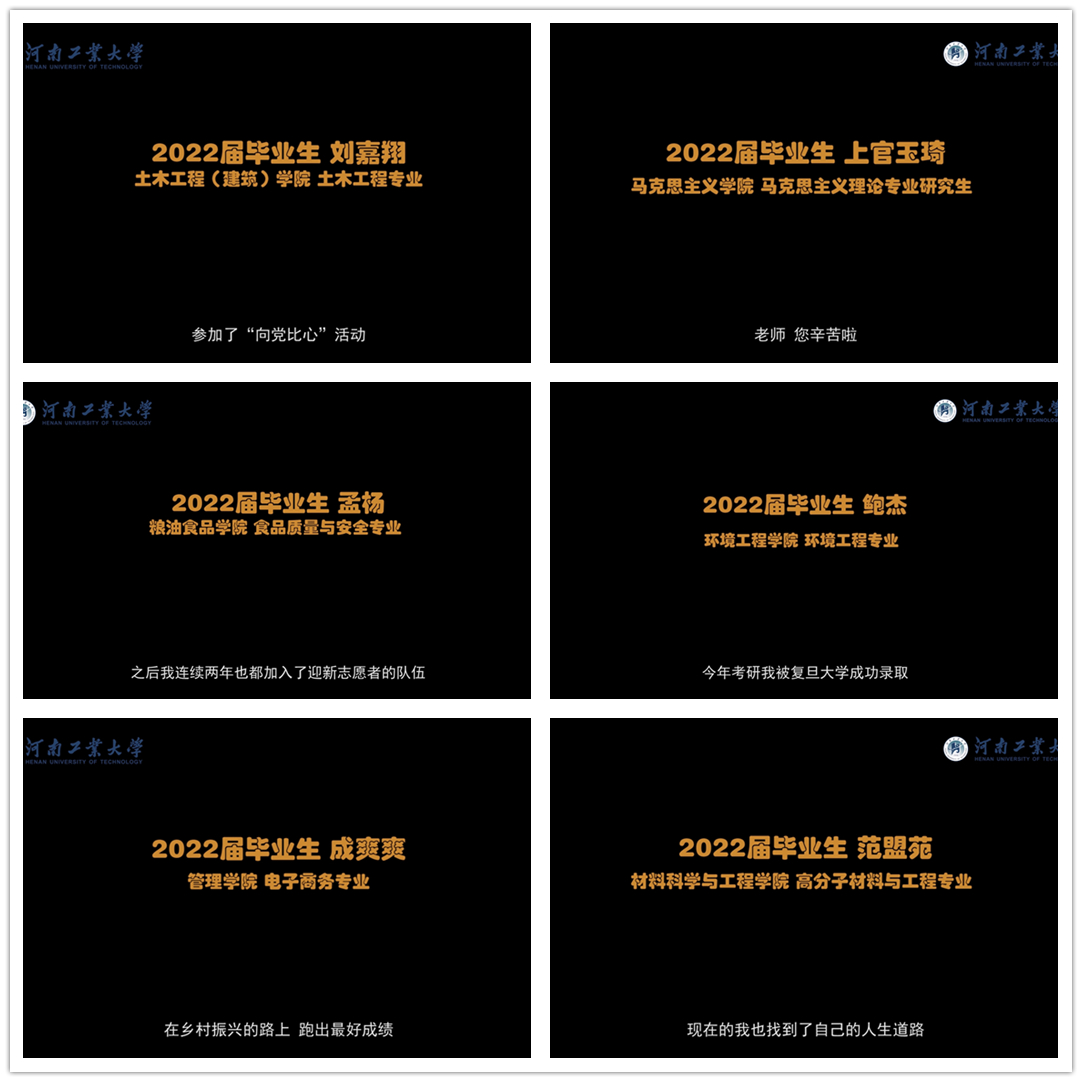 晚会中“回忆故事”版块是全场的亮点之一。2022届的本科、专科、硕士毕业生代表,在采访中回忆大学期间的点滴往事,向母校、向老师表达感恩与不舍,向未来、向理想宣告青春的誓言。