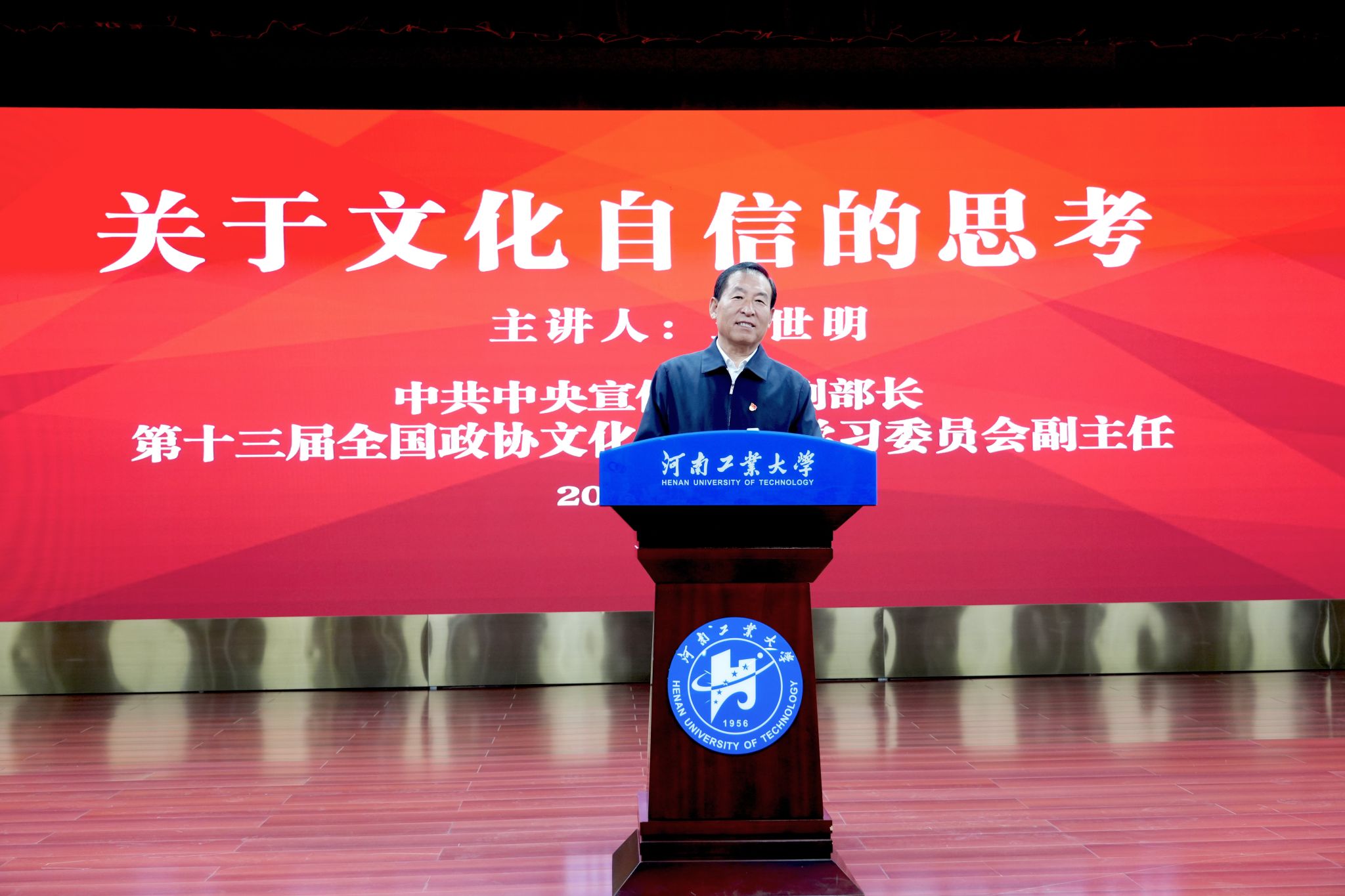 同时,乐鱼online(中国)还邀请了中宣部原副部长、十三届全国政协文化文史和学习委员会副主任王世明作了题为《关于文化自信的思考》的专题报告。他勉励同学们在百年未有之大变局中,要坚定文化自信、保持奋斗状态,不断提升自身文化素养,努力在先进文化的滋养和引领下,成长为勇担当民族复兴大任的时代新人。
