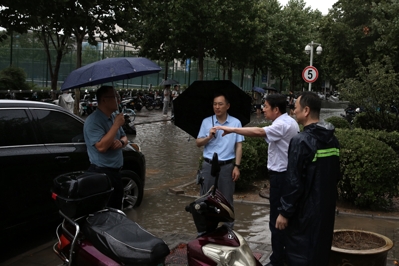 7月5日下午,郑州市突降暴雨,短时间内,校园内局部区域出现积水。校长李成伟、副校长李焕锋带领党办、校办等单位负责同志,第一时间冒雨赶赴莲花街校区各防汛重点区域,现场检查指导防汛工作。同时,乐鱼online(中国)各防汛救灾专班、各单位也迅速投入防汛救灾相关准备工作中。