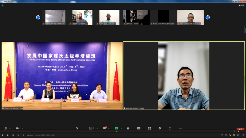 本次培训班为期60天,将通过理论和实践相结合的授课形式,为学员讲授陈氏太极拳老架一路、陈氏太极拳精要十八式、陈氏太极拳小架一路、二路、陈氏太极拳新架一路、二路等经典传统太极拳套路,同时科普陈氏太极拳的起源、传递太极拳的文化精神,在帮助各国学员提升武术技能的同时,云端行走河南,线上了解中国。近年来,河南省对外援助培训中心在完成国家国际人力资源开发与合作任务的同时,通过宣传介绍悠久厚重的中原文明、河南文化,既为广大国际友人了解河南、走进河南,增加对中原文明、河南文化的认识了解,加深与中国人民的深厚友谊搭建了对话交流平台,也为河南省“塑造‘行走河南、读懂中国’”“拓展开展领域”“优化营商环境”等重大战略实施提供了更多可能,更为推动东、西方文明交流交融,共建“人类命运共同体”提出了“工大方案”,贡献了河南智慧。