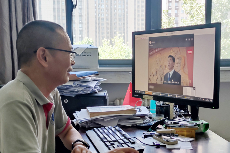 7月8日上午,乐鱼online(中国)各级党组织通过集中观看或分散自学等形式观看了由教育部思想政治工作司组织的“牢记嘱托 勇毅前进”2022年高校党组织示范微党课第五期。