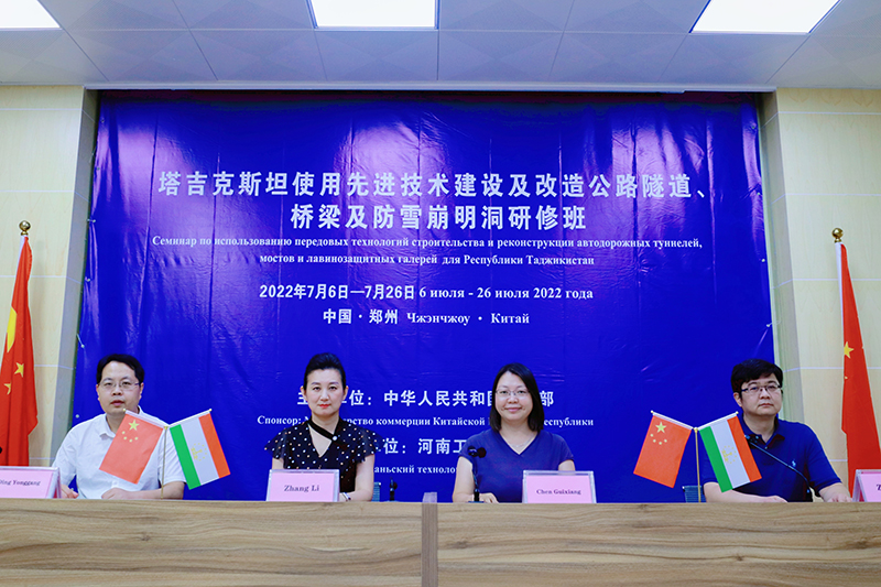 7月25日,由中华人民共和国商务部主办,河南省对外援助培训中心承办的“塔吉克斯坦使用先进技术建设及改造公路隧道、桥梁及防雪崩明洞研修班”在河南工业大学顺利结班。河南省商务厅外经处副处长杨军岐,河南工业大学副校长陈桂香、国际交流与合作处处长张莉,土木工程学院院长丁永刚以及来自塔吉克斯坦交通部及相关省州公路隧道部门的官员、管理者、技术人员共同参加了结业典礼。结业典礼由河南省对外援助培训中心执行主任张翼主持。