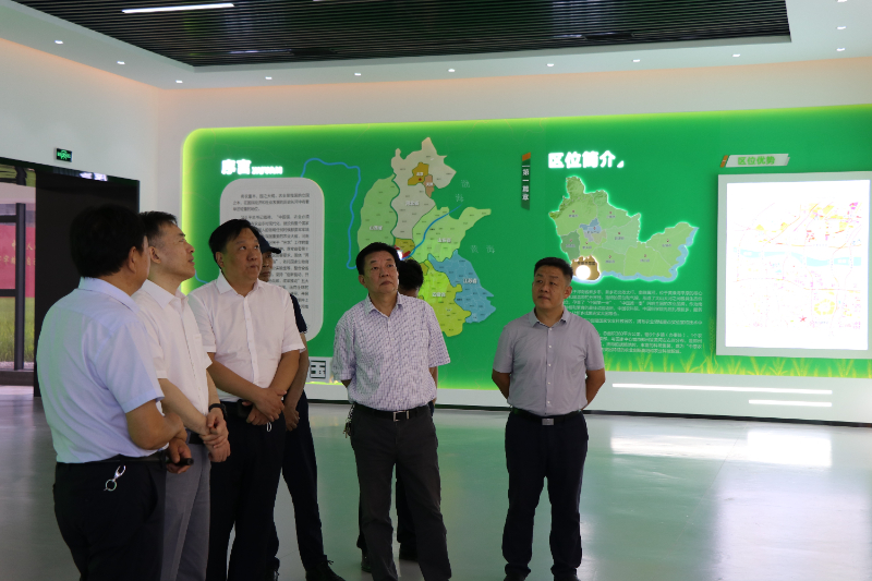 李成伟一行首先参观了中原农谷展厅。平原示范区农高中心主任王相民对中原农谷的总体思路、功能分区、项目推动情况、运行模式、建设目标和入驻专家团队情况进行了详细介绍。