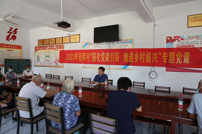 刘志军一行到邓州市冠军村考察调研,座谈会上,冠军村驻村第一书记、人工智能与大数据学院党委书记杜鹏汇报了驻村帮扶工作情况及成果。刘志军对帮扶工作给予高度肯定,他表示,冠军村从软弱涣散村到目前村支部升级为“星级支部”,说明驻村帮扶工作是扎实的,成果是显著的,取得了预期的成效。就继续做好乡村振兴帮扶工作,他提出四点要求,一是加强党建引领,继续加强党支部建设,真正发挥村党支部的战斗堡垒和领导核心作用,带领群众一步一个脚印,往好里奔,往好里走。二是要更新观念,聚才纳贤,乡村振兴,教育先行,通过教育培养人才;继续优化产业结构,通过好的营商环境留住人才。三是要做好产业振兴,既要做强做大现有优势产业,也要拓展发展新的产业,比如今年开发的烟叶项目,就是很好的思路。四是推动文化振兴,文化发展是乡村振兴的内驱动力,冠军村有深厚的文化底蕴和基础条件,要做好传统耕读文化的挖掘和宣传,只有文化振兴与产业振兴两翼齐飞,才能更好的发展乡村振兴。